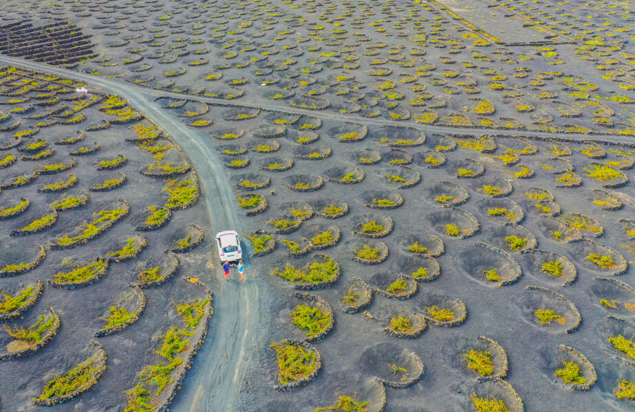 Det er 21 kommersielle vingårder på Lanzarote, samt hundrevis av mindre, private vindyrkere som passer på små biter med vinranker over hele øya. Men langt de fleste holder til i distriktet La Geria, i grenseområdet til den fortsatt aktive vulkanen Timanfaya. De ligner overhodet ikke på de fruktbare vingårdene vi er vant til fra fastlands-Europa.